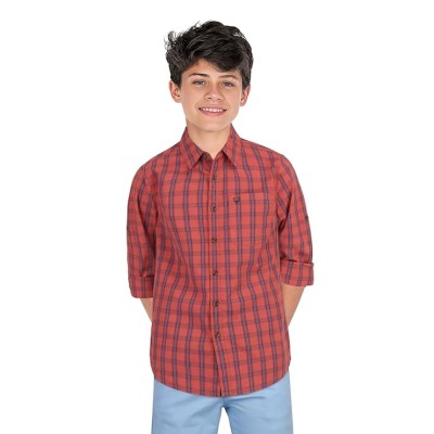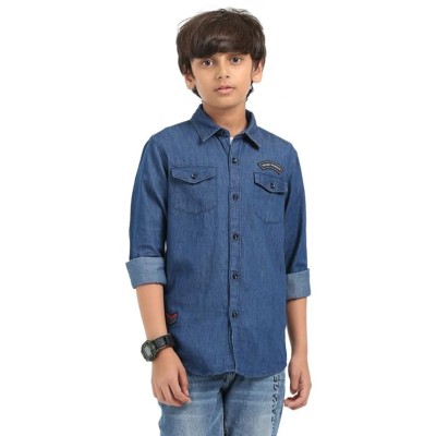 男孩衬衫 |全袖,宽领纯色常规版型 |时尚休闲装纽扣青少年双口袋衬衫,适合年轻潮流引领者