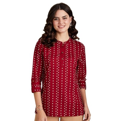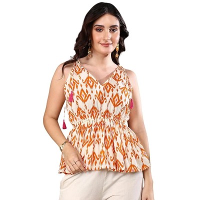 女式纯棉斋普里印花短上衣 (MONJPR703_Peach)