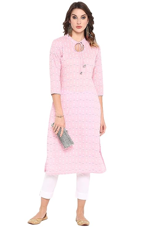 女式人造丝直筒版型 Zari 多臂花卉纱线染色 Kurta