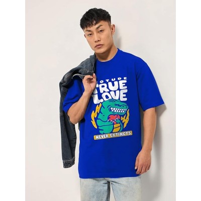 半袖超大号棉混纺圆领落肩印花男士T恤