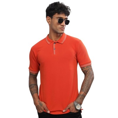 男士素色修身聚酯纤维半袖圆领 T 恤