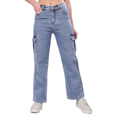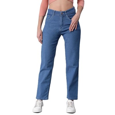 女式宽松版型中腰牛仔裤女式高腰全长直筒版型弹力牛仔裤
