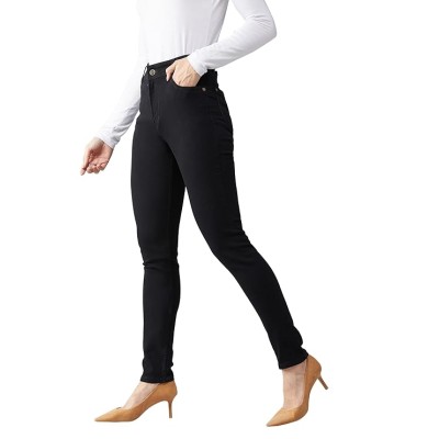 女式黑色修身版型高腰常规长度弹力牛仔牛仔裤