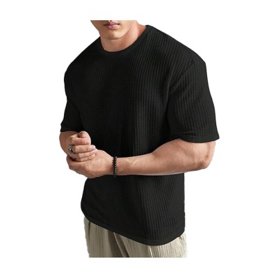 男士素色修身聚酯纤维半袖圆领 T 恤