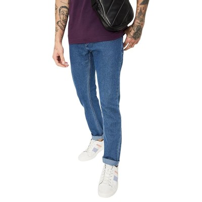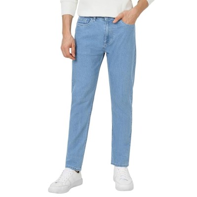 男士修身版型中腰纯色中腰弹力牛仔裤