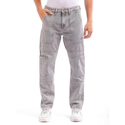 男士弹力版型中腰微喇纯色中腰弹力牛仔裤