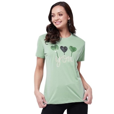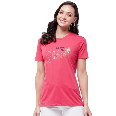 女式T恤半袖印花圆领棉混纺 ||夏季穿搭 ||时尚女式 T 恤