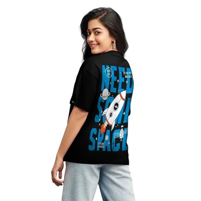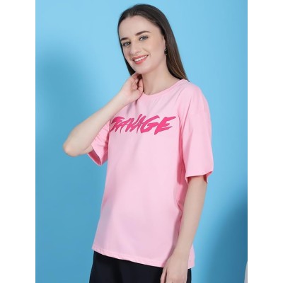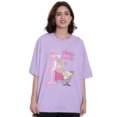女式 100% 纯棉图案印花超大版型圆领 T 恤