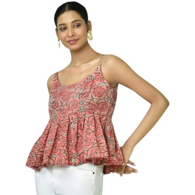 女式纯棉斋普里印花短上衣 (MONJPR703_Peach)