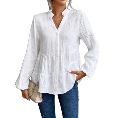 女式 V 领休闲时尚长袖超大版型衬衫