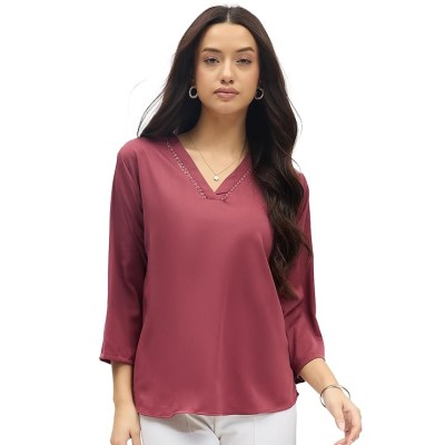 撞色尖头印花上衣 – 时尚民族和西方女式上衣 – 夏季旅行装、牛仔裤时尚上衣、轻便舒适休闲装