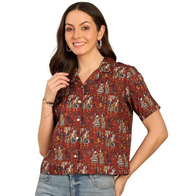 民族印花古巴领纯棉衬衫款式上衣 ||夏季服装