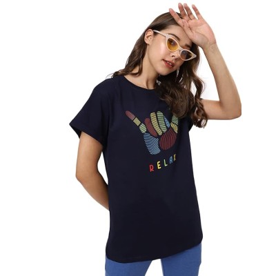 纯棉超大宽松版型我讨厌每个人图案印花软木 T 恤女式