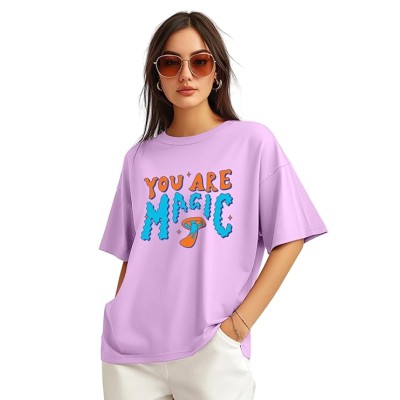 时尚韩式女式 T 恤 – 超大落肩街头风格上衣 |宽松版型夏季女孩 T 恤
