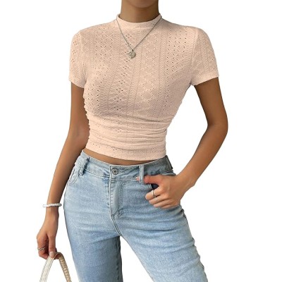 男士运动凉鞋女士绿色休闲半透明短款高领蕾丝饰边女士T恤