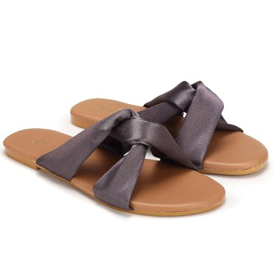 女士套穿平底鞋 – 柔软织物结带 |舒适的 PVC 鞋底 |轻质拖鞋结