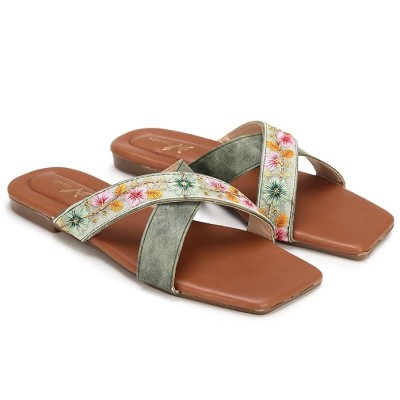 女式平底套穿凉鞋,带交叉带皮革鞋面和PVC鞋底,休闲日常穿平底鞋,适合女士和女孩 |女式凉鞋 |平底凉鞋