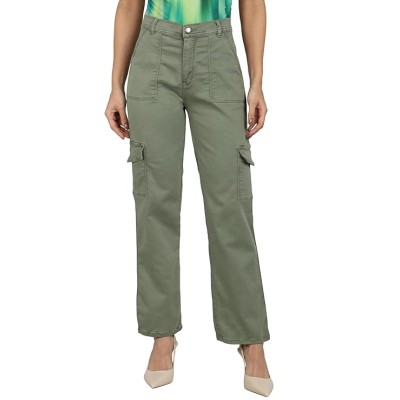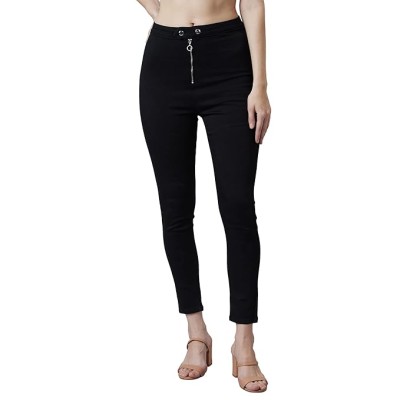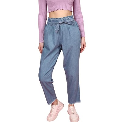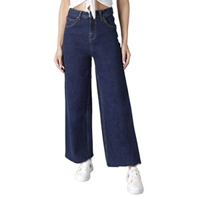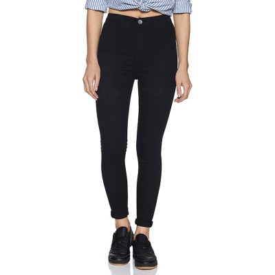 女式高腰棉莱卡干净外观及踝喇叭牛仔裤