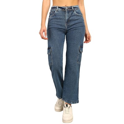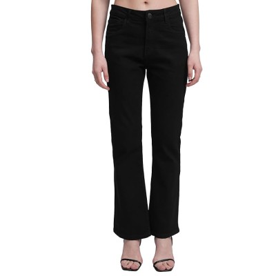 女式高腰直筒喇叭版型棉混纺牛仔裤潮流款式