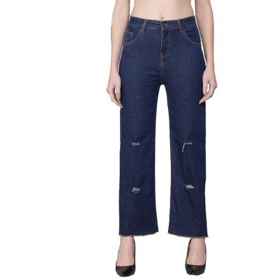女式直筒版型普通牛仔裤 |弹力中腰牛仔裤