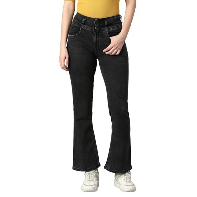 女式高腰喇叭版型棉质莱卡牛仔裤