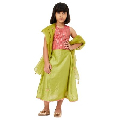 女孩版型和喇叭形涤纶混纺经典中长连衣裙