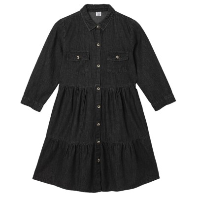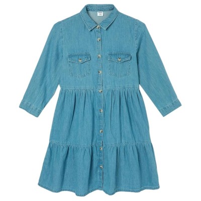 女孩 Pinafore 膝盖以上纯色牛仔连衣裙配 T 恤